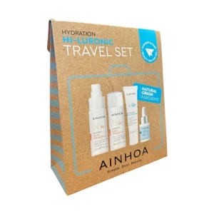 Set de Viaje Hi-Luronic AINHOA – Hidratación en movimiento. Mini ritual facial profesional para refrescar, calmar e hidratar tu piel en verano.