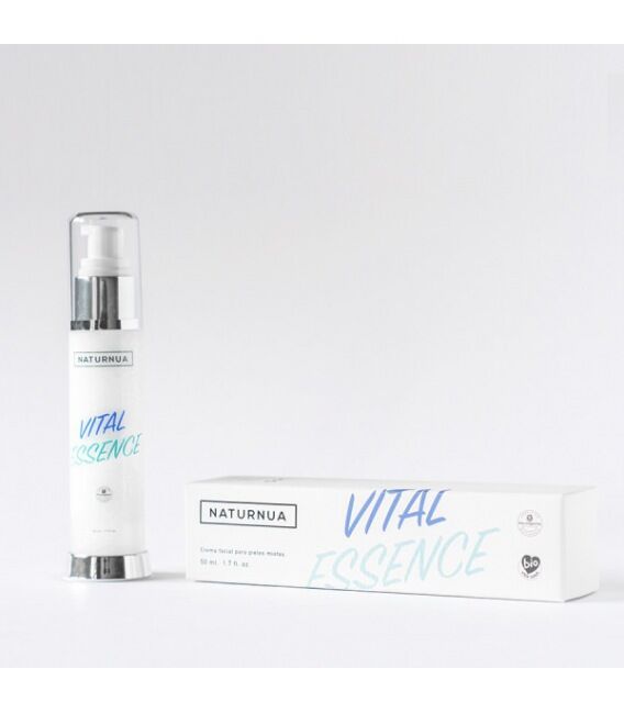 Vital Essence Eco de Naturnua es una crema facial especialmente formulada para pieles mixtas, que combina la eficacia de la cosmética natural con ingredientes de alta calidad para ofrecer un cuidado completo y equilibrado. Su fórmula ligera y no grasa está enriquecida con activos marinos, vitamina C y factores hidratantes que penetran profundamente, aportando hidratación duradera sin comprometer la frescura ni la comodidad de la piel.